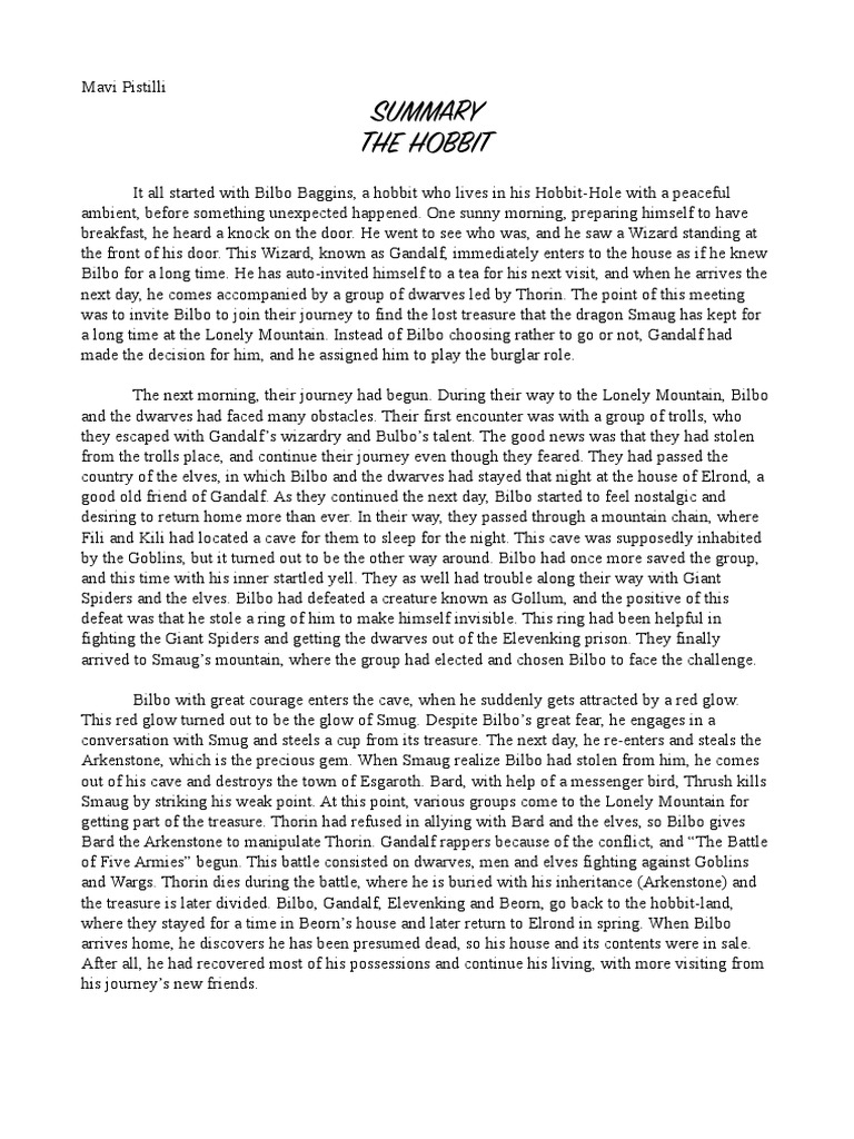 The Hobbit Summary Pdf Pdf Bilbo Baggins Middle Earth